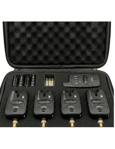 Sygnalizatory elektroniczne zabezpieczone są przed niekorzystnymi warunkami atmosferycznymi. O braniu jesteśmy informowani za pomocą dźwięku i światła. Sygnalizatory wyposażone są w Linię 8 led, sygnalizującą przypisany kolor, kierunek oraz szybkość brania! Posiadają również jasną kolorową diodę "NIGHT LIGHT", która w ciemności pomoże zlokalizować odpowiedni zestaw z sygnalizatorem. Sygnalizatory działają w dwie strony - od i do brzegu. Sygnalizatory posiadają regulację głośności, wysokości tonów oraz czułości. Gdy wyciszymy całkowicie dźwięk w centralce pozostaje nam sygnalizacja wibracyjna . Sygnalizatory posiadają możliwość podłączenia swingera lub hungera - dzięki zastosowanemu wyjściu z gniazdem typu mini jack. Wodoodporna obudowa zabezpiecza sygnalizatory przed niekorzystnymi warunkami atmosferycznymi. Dzięki znormalizowanemu gwintowi sygnalizatory pasują do wszelkiego rodzaju podpórek, podów i tri podów. Sygnalizatory zasilane są bateriami 9V znajdującymi się w zestawie. Natomiast do centralki dołączone sa baterie AAAx3...