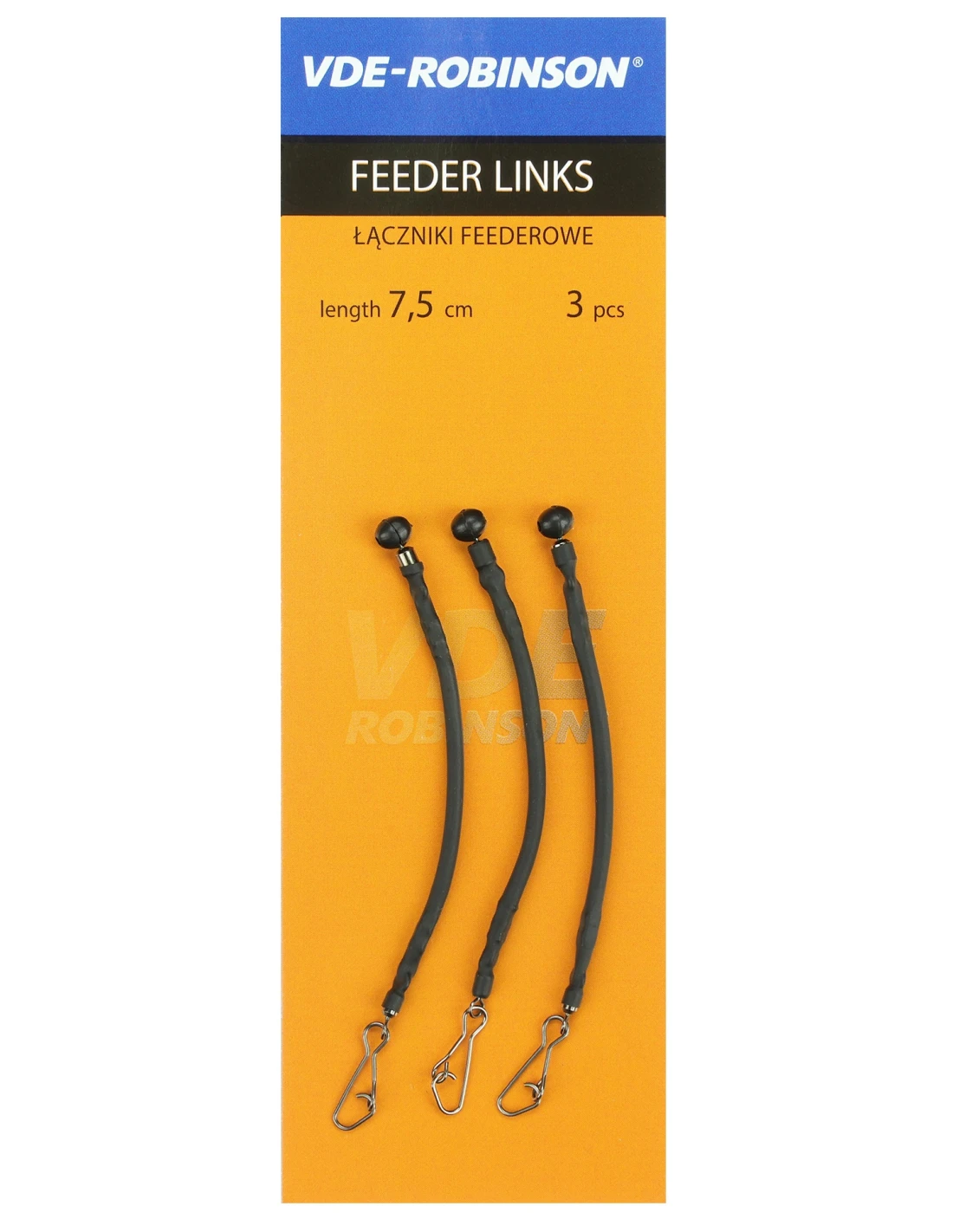 Łączniki feederowe Robinson Feeder Links - dobrej jakości łączniki marki Robinson do koszyków zanętowych typu Feeder Link. Sztywniejsza konstrukcja, dodatkowo zabezpieczona przed plątaniem. Niezbędny produkt podczas delikatnych brań, znacznie poprawiający czułość całego zestawu. Dostępne w trzech rozmiarach: 5, 7.5 oraz 10cm.