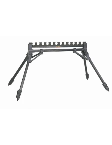 Podpórka grzebień Grand Prix TraperPodpórka Grand Prix ( szer.65cm, wys. 42 do 75cm) Bardzo stabilna podpórka do wędki i topów. Grzebień wykonany z miękkiej, doskonale amortyzującej pianki Eva. Stelaż z lekkiego aluminium. Nogi statywu zostały dodatkowo zabezpieczone przesuwnymi wspornikami, zapobiegającymi przypadkowemu złożeniu nóg. Bardzo łatwe i szybkie rozkładanie i składanie dzięki bocznym solidnym zaciskom z tworzywa. Rozsuwane nogi składają się z trzech elementów.