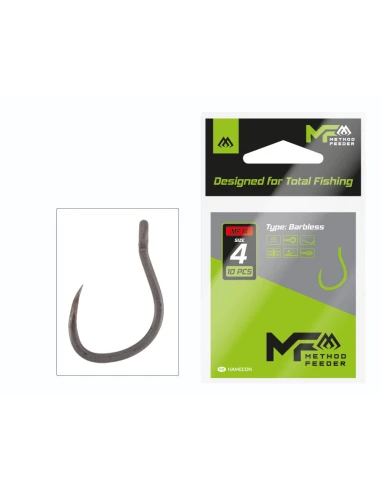 Haczyki Mikado HMF14B to bezzadziorowe haki z oczkiem, zaprojektowane z myślą o dużych rybach łowionych metodą, bombką lub pellet wagglerem. Są niezwykle mocne, piekielnie ostre oraz pewnie trzymają rybę, nawet podczas długiego holu, co czyni je idealnym wyborem na łowiska komercyjne i klubowe, gdzie użycie zadziorów jest zabronione. Haczyki mają matowe wykończenie, występują w różnych rozmiarach