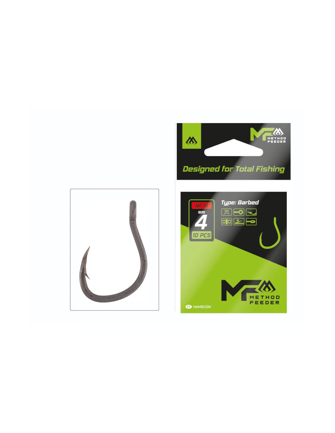 HMF14 MIKADO to seria haków wędkarskich od producenta Mikado. Są to nowe, pogrubione haki zaprojektowane specjalnie do łowienia dużych ryb metodą feeder, bombką lub pellet wagglerem. Charakteryzują się agresywnym kształtem dla zwiększenia skuteczności zacięcia, wysoką wytrzymałością, która pozwala na hol silnych ryb bez odkształceń, oraz pewnym trzymaniem ryby dzięki zadziorowi. Haki mają matowe wykończenie, które zmniejsza refleksy światła i czyni je mniej widocznymi w wodzie, co pomaga płoszeniu ryb. W opakowaniu znajduje się 10 sztuk takich haczyków.