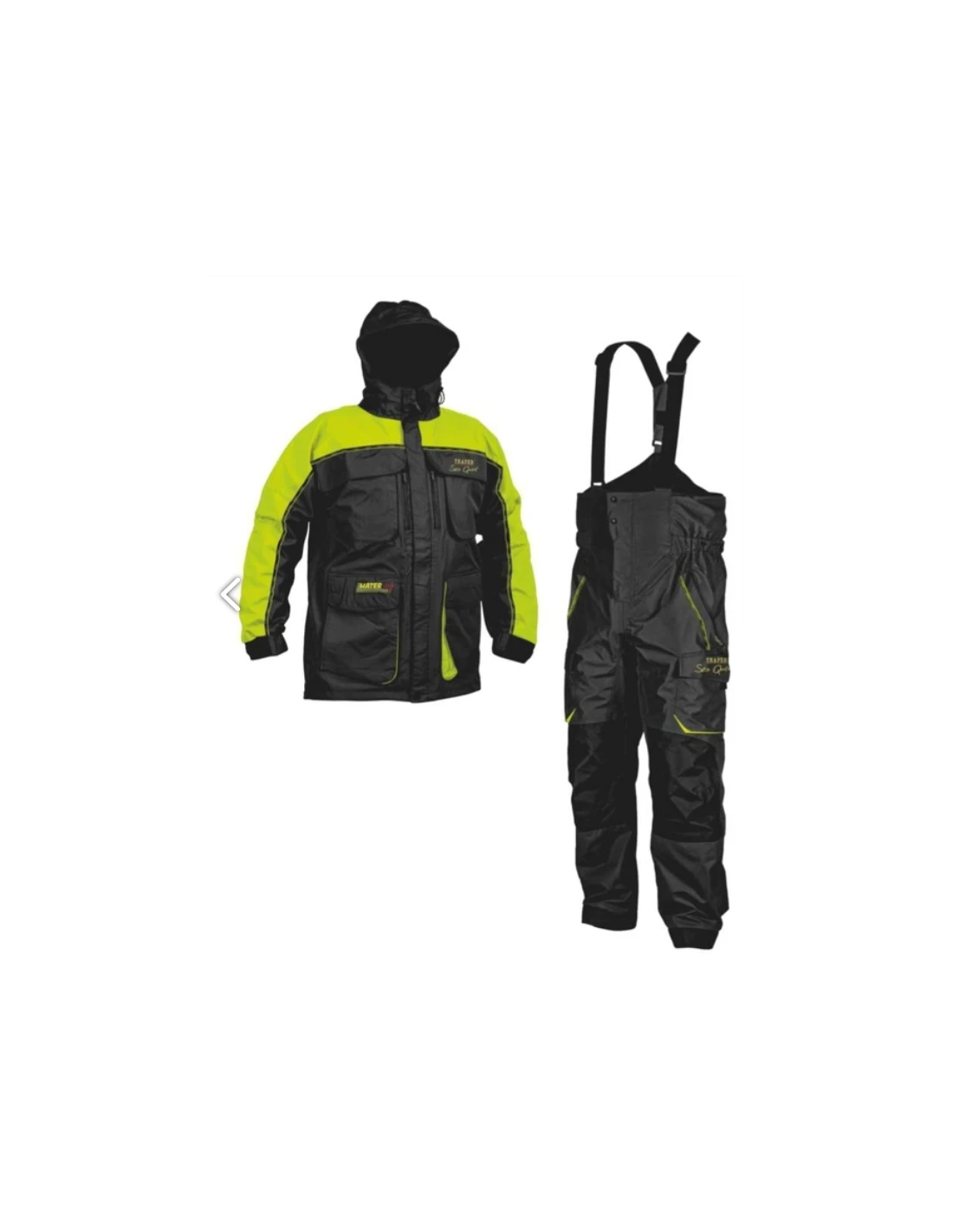 Dwuczęściowy Kombinezon, wykonany z odpornego materiału 5000 h2o. Podpinka z siatki cyrkulacyjnej , umożliwiająca wymiane powietrza. Kieszenie w kurtce i spodniach ogrodniczakach wyposażono w wodoodporne zamki i wygodne gumowane duże żekardy.Neoprenowe szczelne mankiety kurtki zabezpieczają przed wodą i wiatrem . Obszerny regulowany usztywniony kaptur daje doskonałą osłonę.