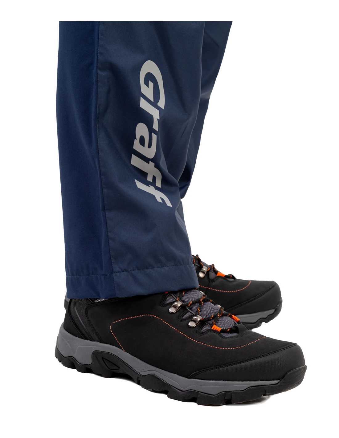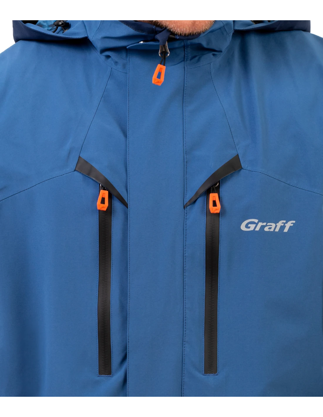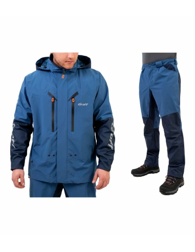 Wodoodporny komplet wędkarski Graff, w którego skład wchodzi kurtka wodoodporna 606-B-1 oraz spodnie wodoodporne 706-B-1.