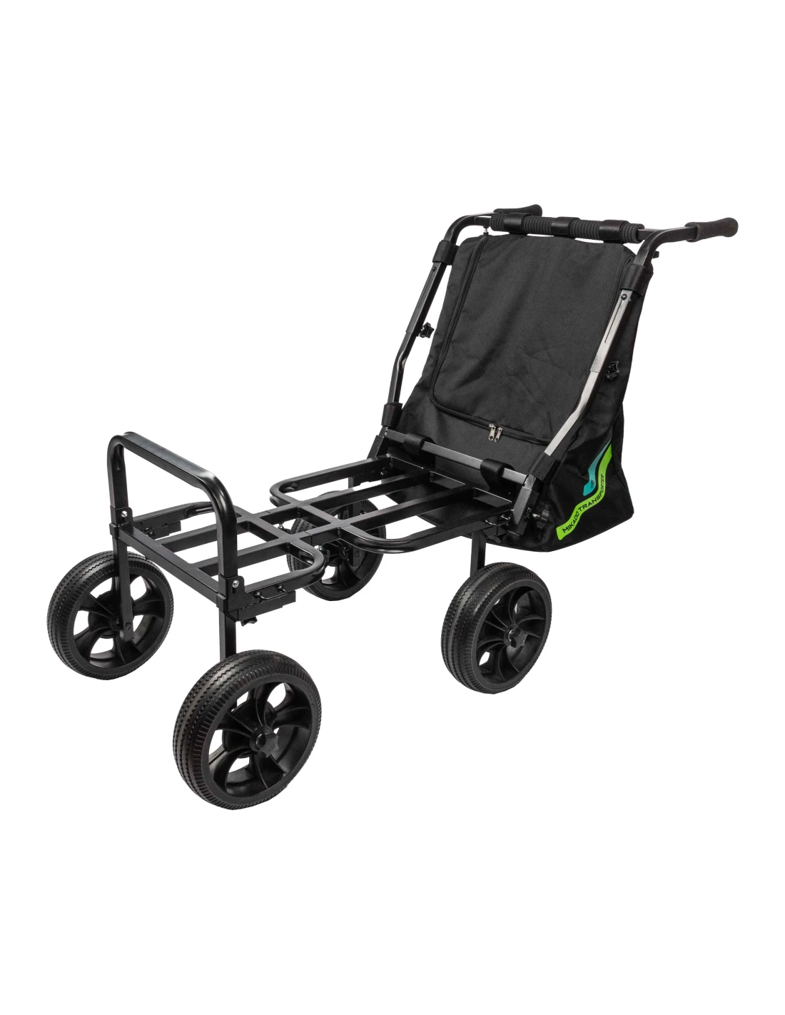 T1 Transporter to komfortowy wózek z obszerną platformą o regulowanej długości oraz pojemną torbą. Bez problemu zmieści duży kosz z całym osprzętem. Posiada również wygodną regulację wysokości rączek i kompaktowe rozmiary transportowe.