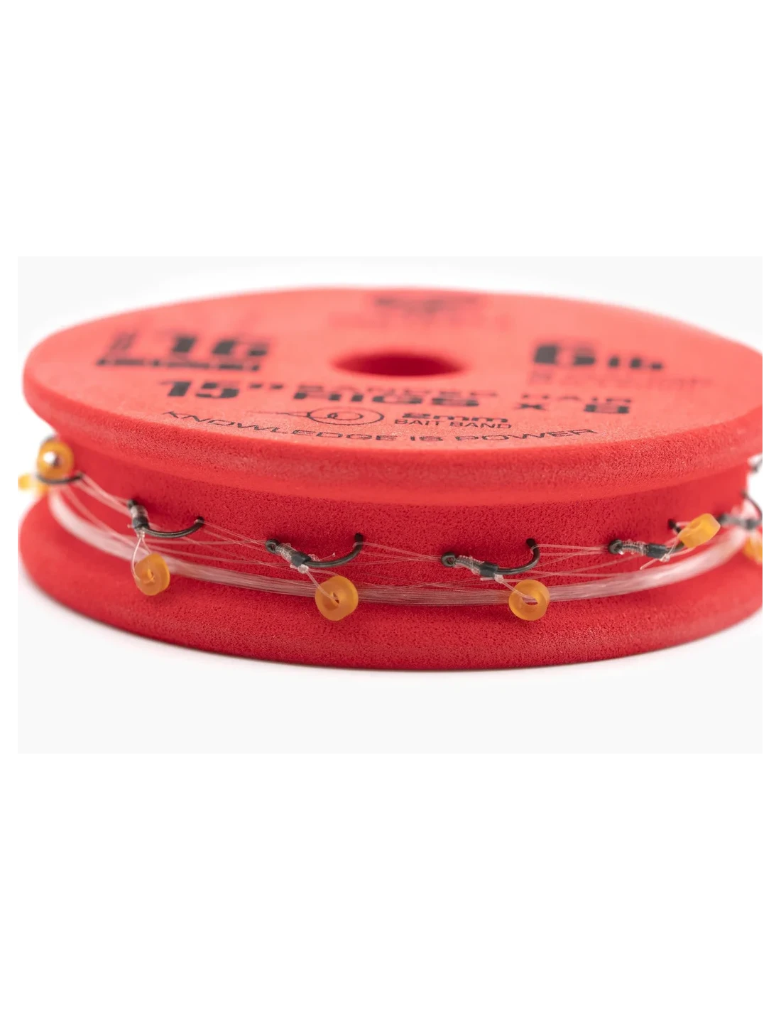 Przypony Guru to gotowe zestawy przyponów z serii QM1 Bait Bands, o długości 38 cm (15 cale) i średnicy żyłki 0,22mm, 0,19mm, 0,17mm. Haki mają rozmiar 10,12,12,16 i są bezzadziorowe, pokryte powłoką PTFE dla zwiększenia ostrości i trwałości. Przypony zakończone są gumką, umożliwiającą szybkie i pewne mocowanie przynęt na włosie, takich jak twarde pellety, waftersy, pop-upy, czy białe robaki. Na trzonku haczyka i włosie znajduje się siliknowa rurka stabilizująca przynętę. Te przypony są idealne do łowienia na wodach komercyjnych na różne techniki, m.in. feeder, bomby, pellet waggler, oraz do większych ryb jak karp, leszcz, lin czy F1