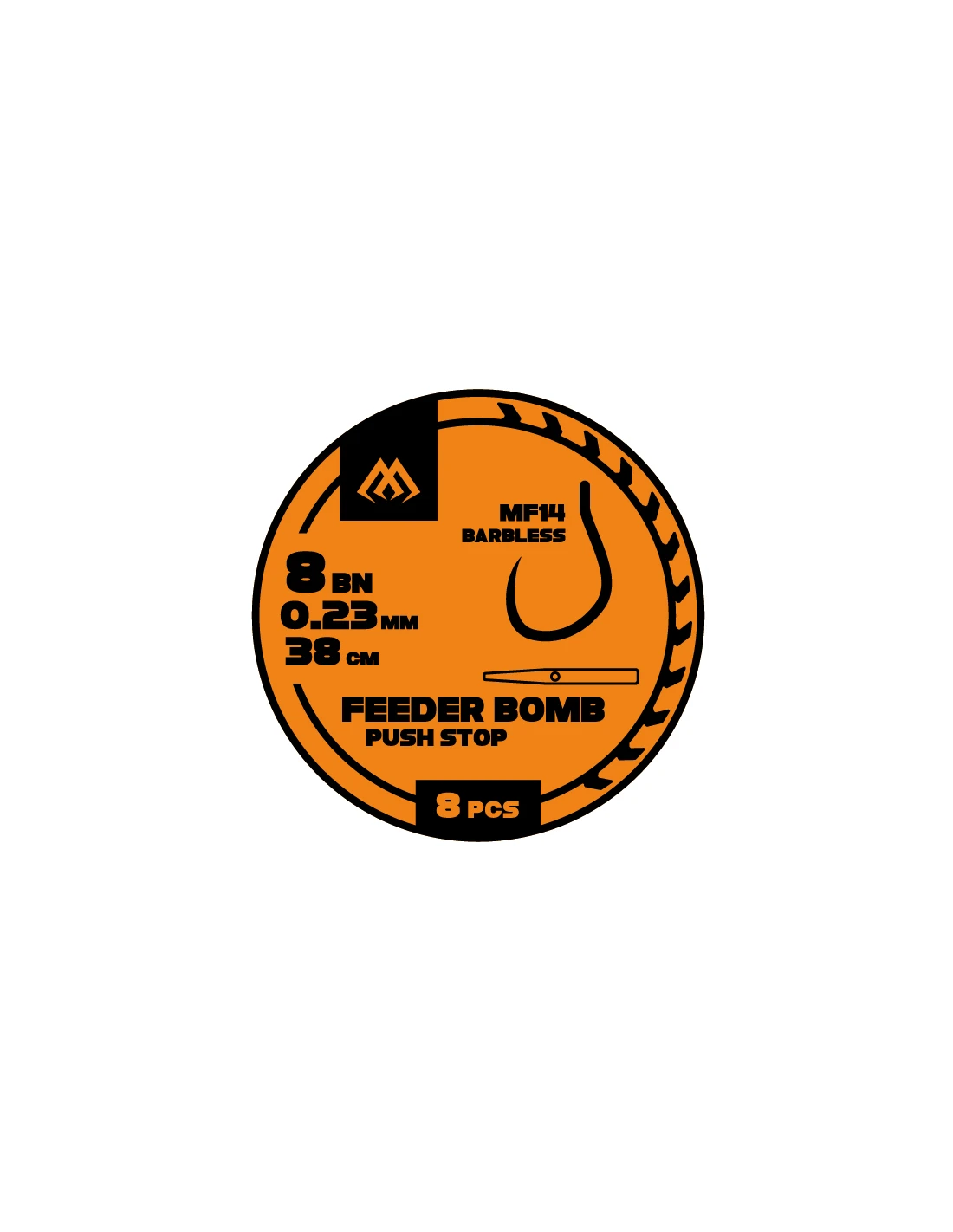 Gotowe przypony wędkarskie Mikado Feeder Bomb Push Stop MF14 o długości 38 cm i średnicy żyłki 0,18 mm. Są to przypony bezzadziorowe z hakiem MF14, zaprojektowane do łowienia dużych ryb. Idealnie sprawdzają się w technikach feeder bomb, wolno opadającej oraz pellet waggler, a stoper służy do prezentacji przynęty. W opakowaniu znajduje się 8 sztuk tych przyponów.