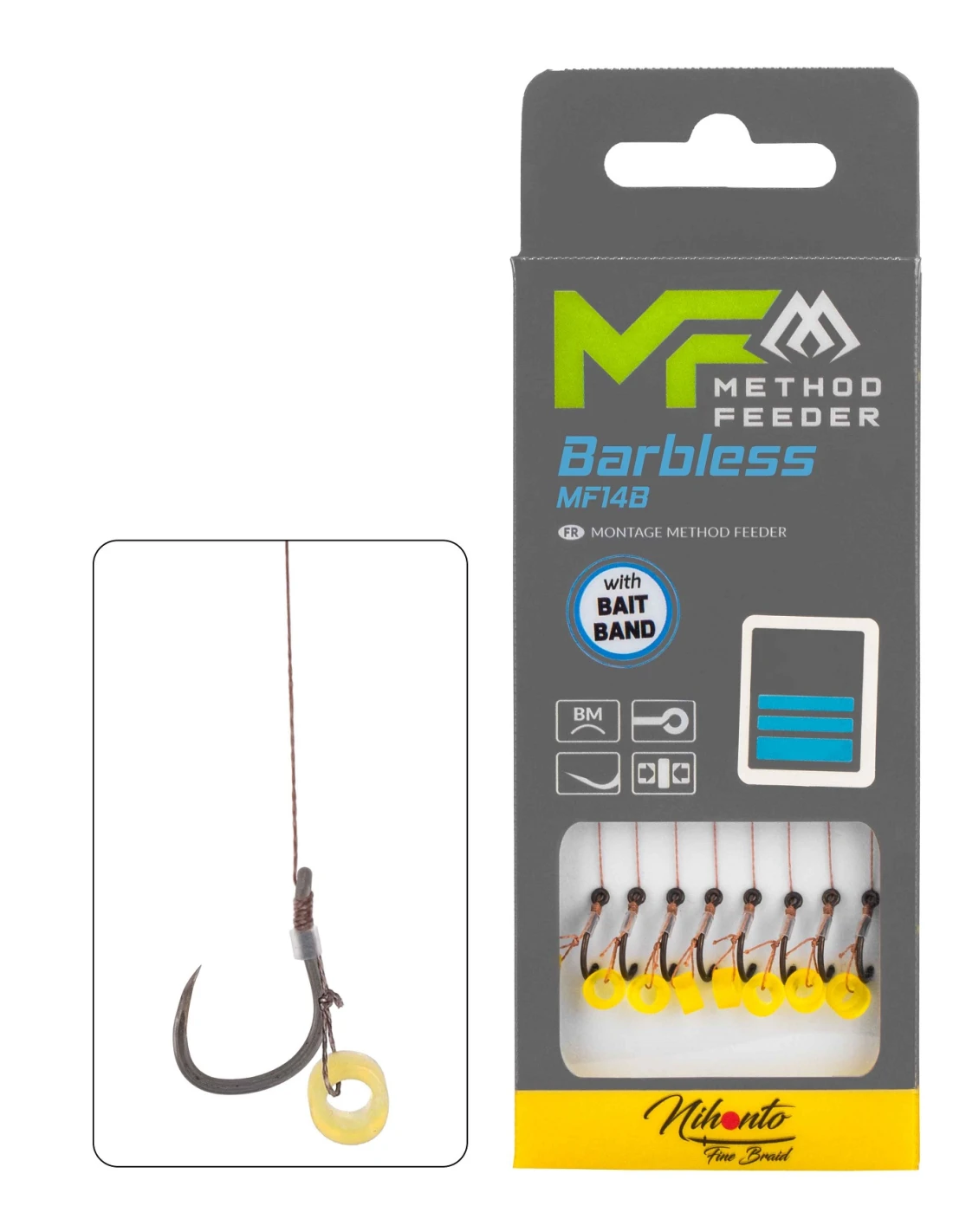 Przypony Mikado Method Feeder MF14B Barbless / PLECIONKA/ GUMKA- roz. 4