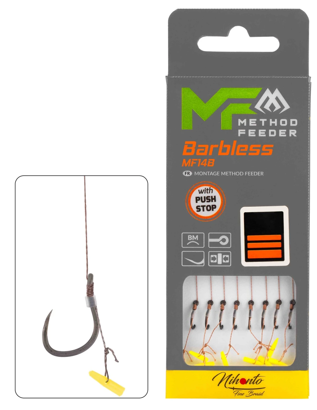 Przypony Mikado Method Feeder MF14B Barbless / PLECIONKA/ PUSH STOP - roz. 6