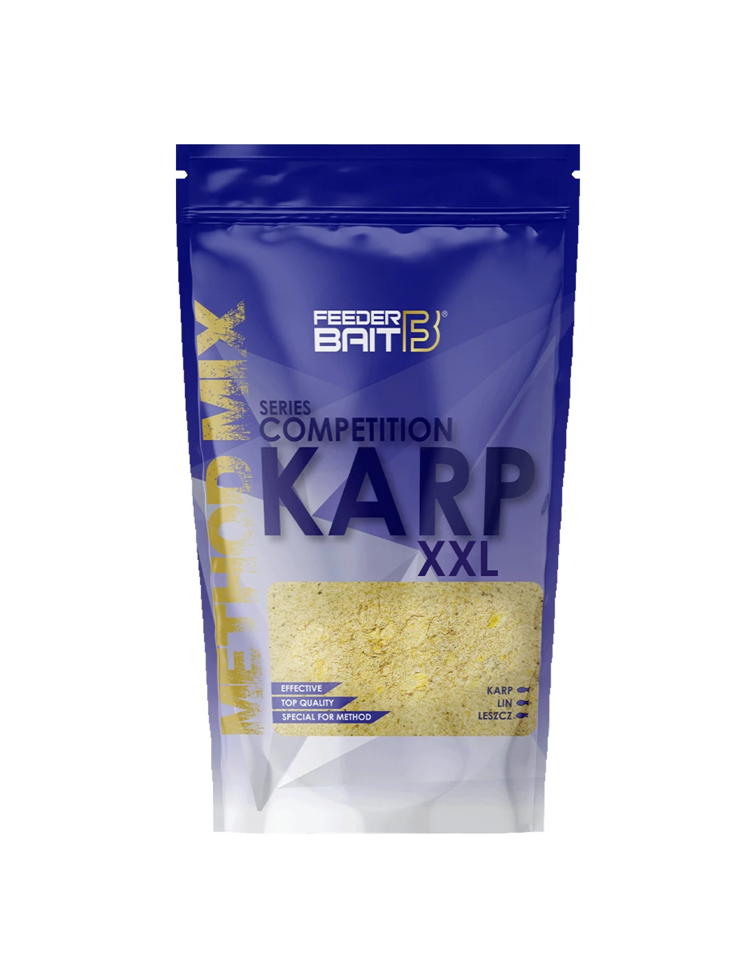 Method Mix Competition Karp XXL - Feeder Bait Zanętę wyprodukowano zgodnie z technologią Feeder Bait. Zawiera w swoim składzie niezwykle bogatą gamę surowców wpływających na jej skuteczność. Zanęta zaprojektowana przez medalistę Klubowych Mistrzostw Świata. Baza zanęty wyprodukowana na Mistrzostwa Świata Węgry 2021- Free Style Method Feeder. Jasny kolor skutecznie pobudza ryby do żerowania. Zanęta tworzy zawiesinę przy dnie dzięki czemu mocno wabi a gruba frakcja skutecznie utrzymuje ryby w polu łowienia. Waga; 800g
