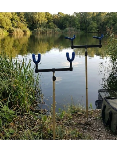 Ochrona wędzisk: W zestawie znajdują się 4 profesjonalne uchwyty (widełki) z antypoślizgowymi, gumowanymi wkładkami w kolorze niebieskim, które chronią blank wędki przed zarysowaniami i zapobiegają jej przesuwaniu się podczas gwałtownych brań.