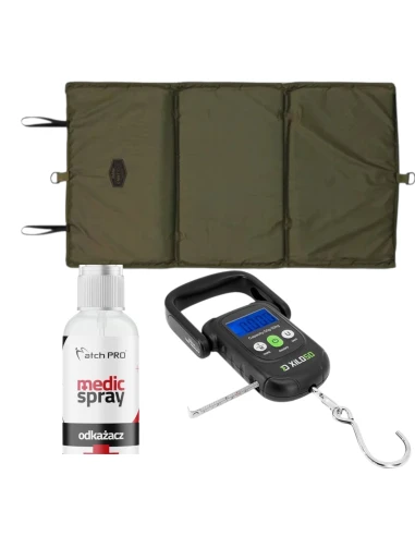 Kompletny, praktyczny zestaw dla każdego wędkarza, który łowi odpowiedzialnie i zgodnie z regulaminem łowisk. W wielu miejscach mata, środek odkażający i waga są już wymaganym wyposażeniem stanowiska – ten zestaw zapewnia wszystko, czego potrzebujesz do bezpiecznego obchodzenia się z rybą od momentu wyholowania, aż po delikatne wypuszczenie.