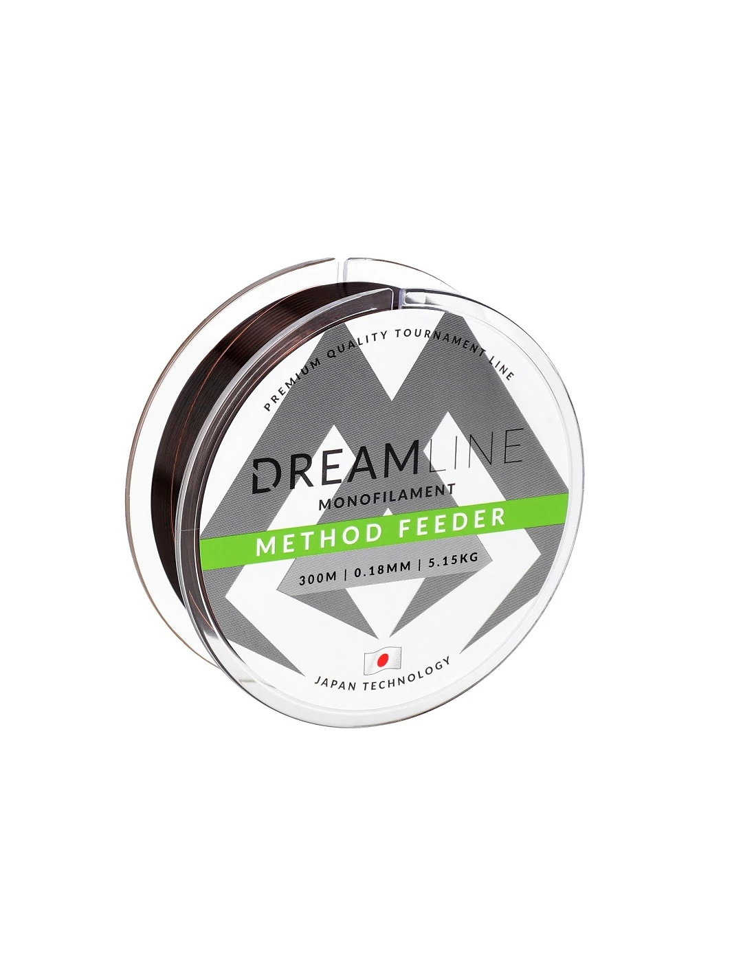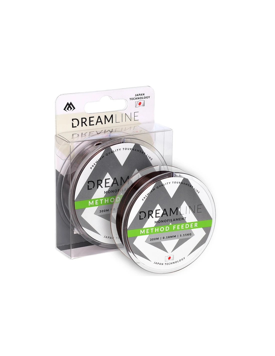 Dream Line Method Feeder to tonąca żyłka klasy premium, której parametry zostały opracowane specjalnie pod kątem łowienia na metodę. Hybrydowa konstrukcja warstw nylonu pozwoliła połączyć zarówno niską rozciągliwość, dużą wytrzymałość oraz brak pamięci.